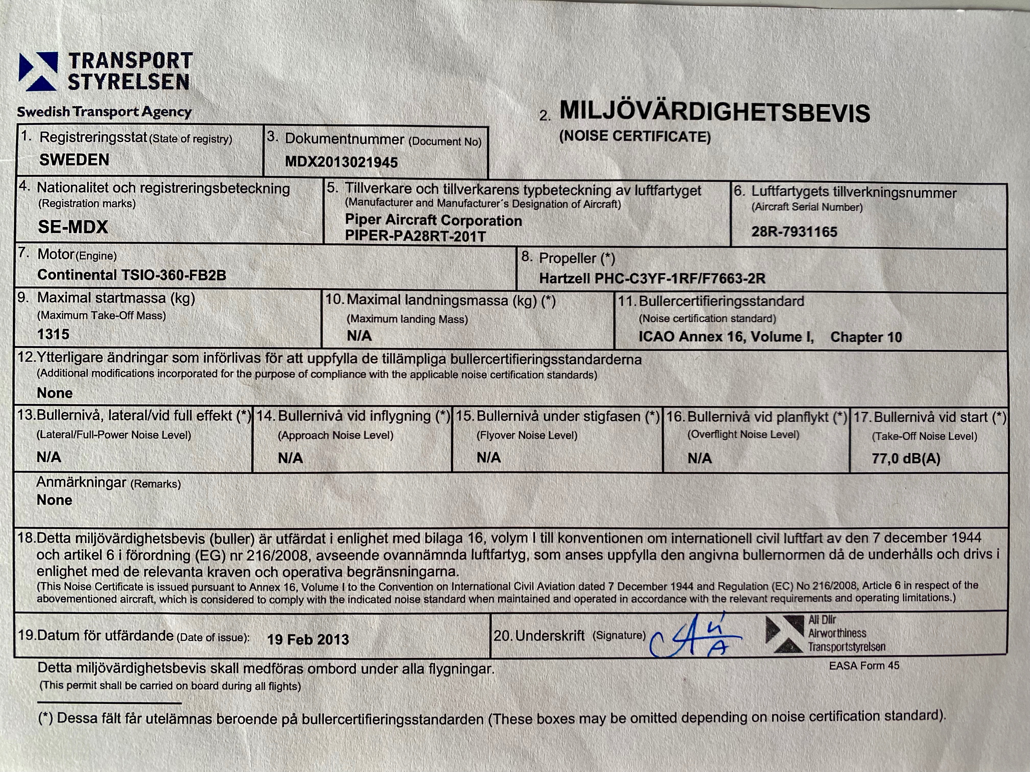 Noise Certificate
